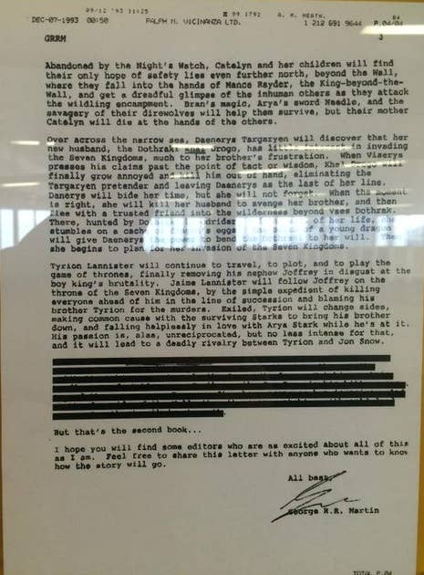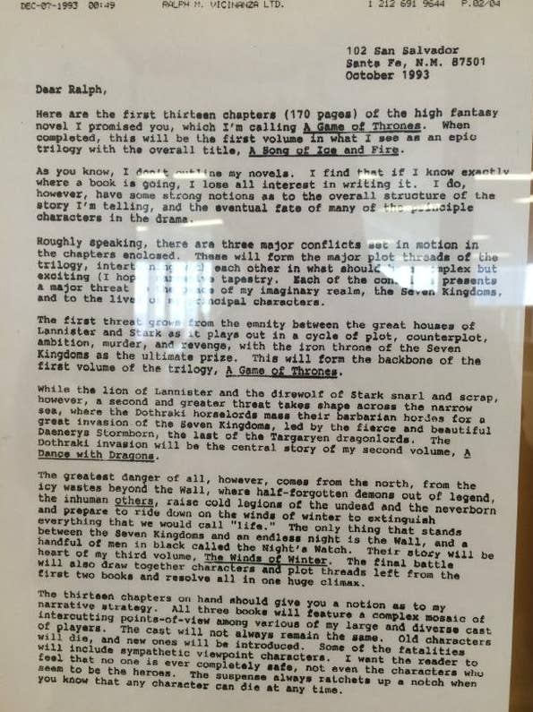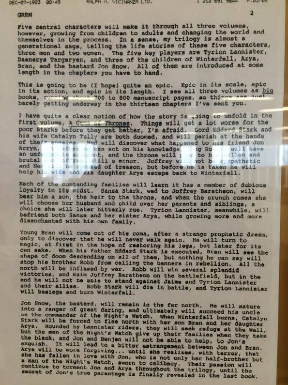Στο αρχικό προσχέδιο του 1993 ο GRRM συνοψίζει τα σχέδια του για- αρχικά δεδομένη ως τριλογία- το τραγούδι της Φωτιάς και του Πάγου.